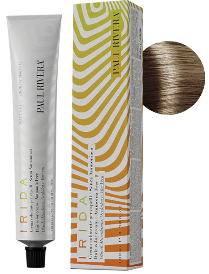 Sekretem kremu koloryzującego Irida jest formuła bez amoniaku, która delikatnie nadaje włosom lśniące i wielowymiarowe refleksy. Zapewnia rozjaśnienie aż o 3 tony. Dzięki innowacyjnej technologii opartej na olejku makadamia oraz ekstraktach z orchidei i aloesu Irida regeneruje i chroni włosy podczas zabiegu fryzjerskiego. Nieagresywna formuła i wysoce koloryzujące pigmenty tworzą idealną mieszankę, która pozwala stworzyć grę świateł i nadać długotrwały kolor.