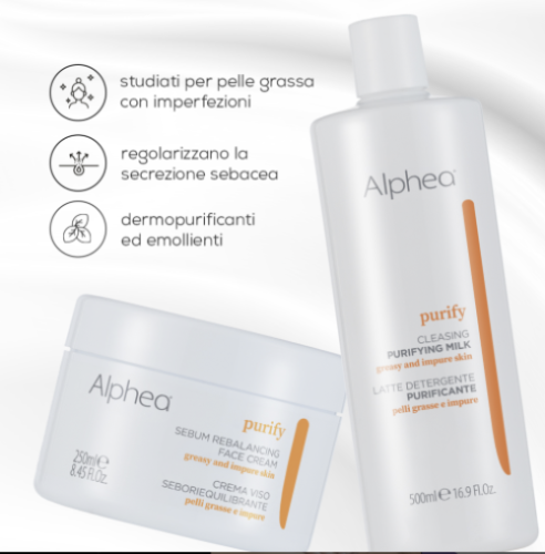 Alphea Purify Sebum Rebalancing Face Cream skutecznie reguluje gromadzenie się sebum w powierzchniowych warstwach skóry, zapewniając jej świeżość, promienność i jedwabistość. Ten profesjonalny produkt z linii Purify intensywnie oczyszcza i odnawia naskórek, redukując efekt nadmiernego świecenia, typowy dla cery tłustej i skłonnej do niedoskonałości.