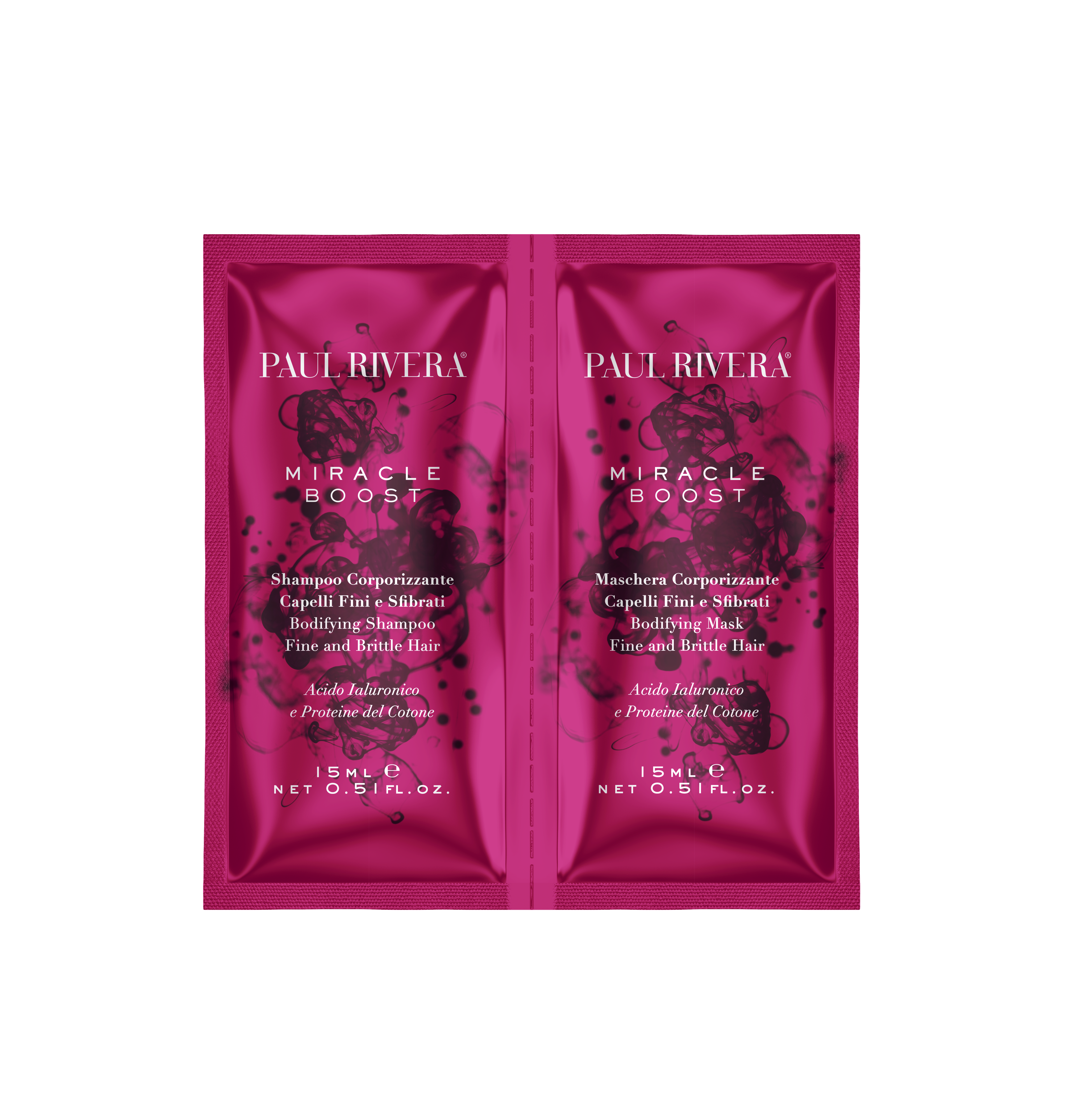 PAUL RIVERA MIRACLE BOOST - Mini zestaw wypełniający z kwasem hialuronowym szampon 15ml i maska 15ml