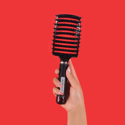 Elegancka czarna paddle brush z mieszanym włosiem dzika i nylonowymi kolcami. Umożliwia bezbolesne rozczesywanie, masaż skóry głowy i naturalny połysk. Idealna do suszenia i codziennej pielęgnacji.